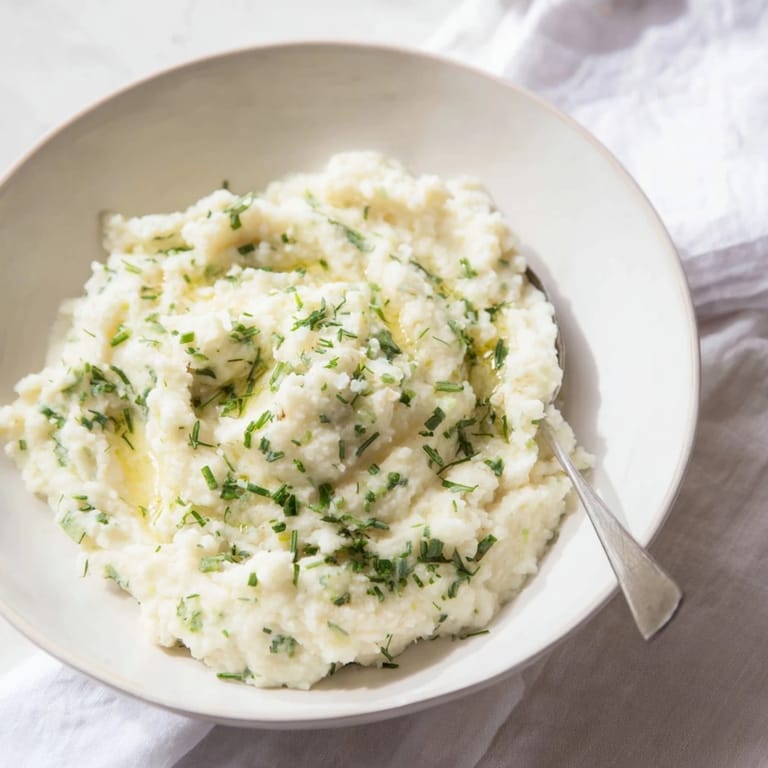Save to Pinterest A light and creamy alternative to mashed potatoes, this cauliflower mash is infused with roasted garlic and fresh lemon herb flavors for a bright, comforting side dish.
