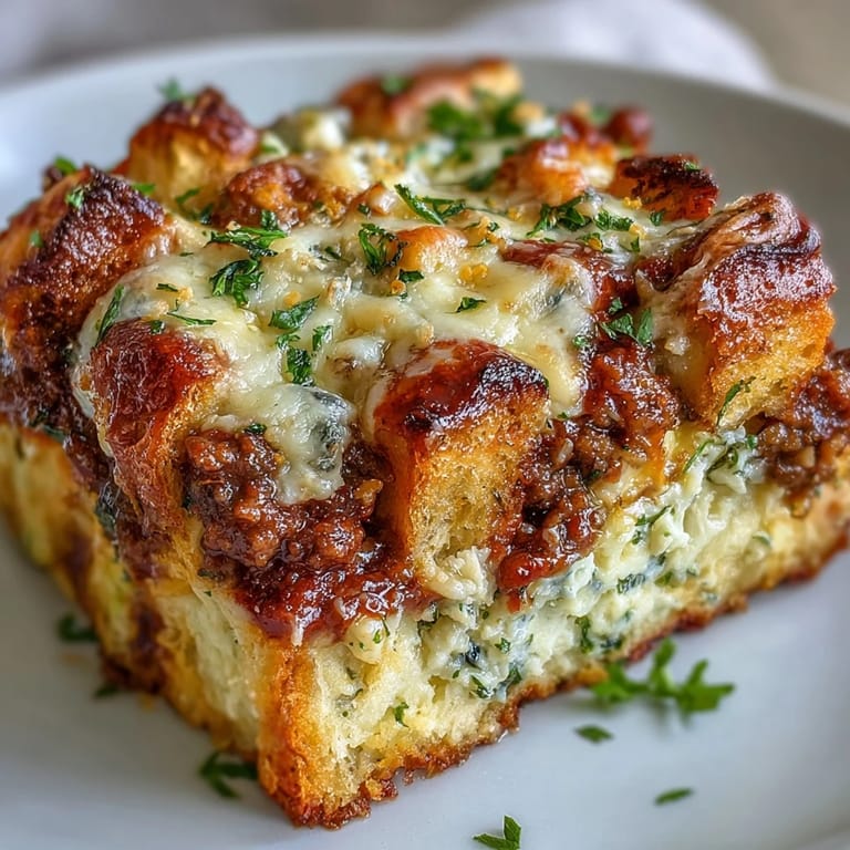 Save to Pinterest My cast-iron skillet has seen a lot of experiments, but the night I decided to bake lasagna in it instead of a traditional pan changed everything. I was tired of standing at the stove layering noodles, and that's when it hit me: what if I swapped the pasta for garlic bread cubes and let the skillet do the heavy lifting? The result was pure comfort, bubbling and golden, with every bite delivering that impossible combination of crispy, garlicky bread and melted cheese pulling away from the pan in long, satisfying strands.