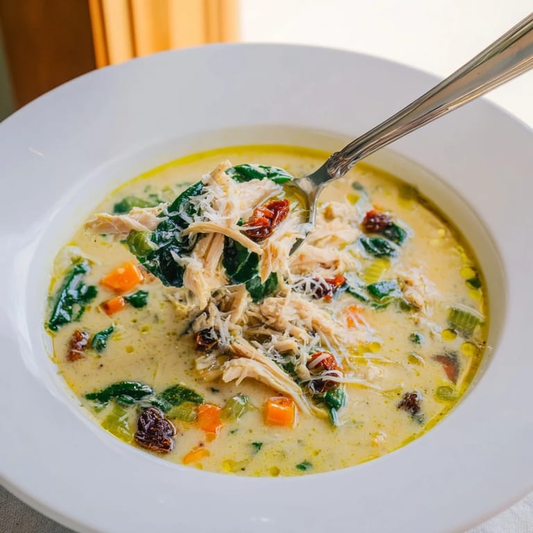 Save to Pinterest My neighbor brought me a bowl of this soup on a rainy Thursday when I was recovering from a cold, and I swear it tasted like someone bottled up the Italian countryside. The spinach was still bright green, the tomatoes sweet and tangy, and the cream swirled through the broth like silk. I asked for the recipe immediately, and she laughed and said it was just what she threw together with leftover rotisserie chicken. Now I make it every time someone needs comfort, or when I need to feel taken care of myself.