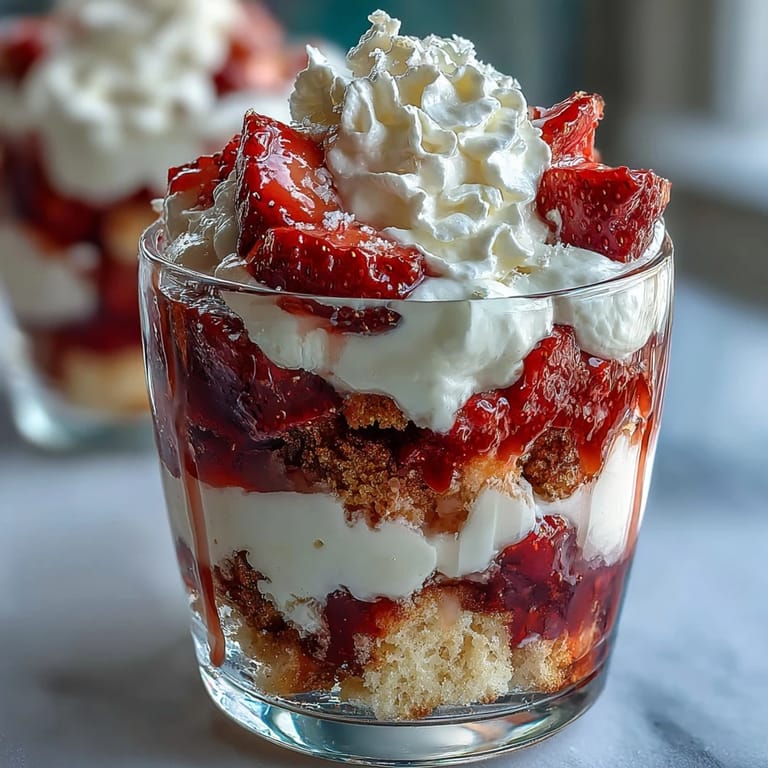 Save to Pinterest There's something about layering a dessert that makes you feel like you're building edible architecture, and this strawberry shortcake trifle does exactly that. My friend Sarah showed up at my door one February afternoon with a bag of the most gorgeous strawberries I'd ever seen, and we decided right then to make something special—something that would be as fun to assemble as it was to eat. The beauty of this trifle is that it comes together quickly, and watching those layers stack up in a glass dish feels like creating edible art.