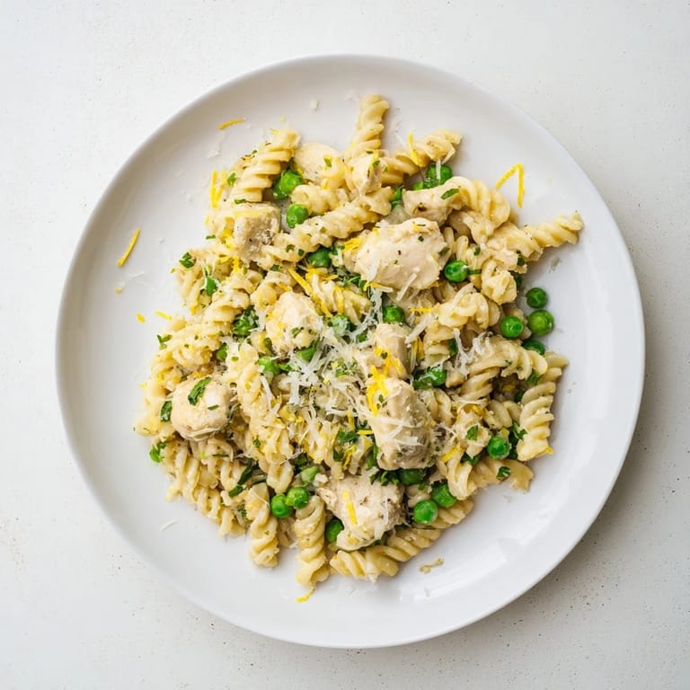 I have tried adding baby spinach in with the peas, and it wilts beautifully into the sauce. Sometimes I swap in shredded rotisserie chicken when I am short on time, and nobody notices the difference. The recipe is forgiving enough to handle whatever vegetables or proteins you have on hand.