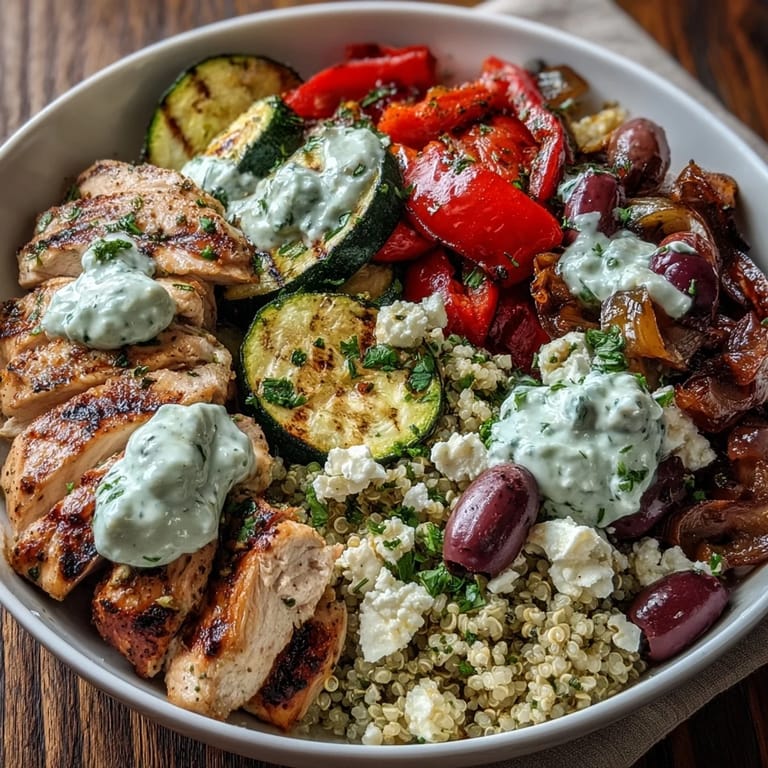 Save to Pinterest The smell of oregano and lemon hit me the moment I opened the fridge, and I remembered I'd left the chicken marinating overnight. That morning I wasn't even sure I wanted to fire up the grill, but once those vegetables started charring and releasing their sweet, smoky aroma, I couldn't stop smiling. My neighbor leaned over the fence and asked what I was cooking, and by the time I plated the bowls, she was sitting at my table with a fork in hand. We didn't talk much, just ate and savored every bite. That's when I knew this recipe was a keeper.
