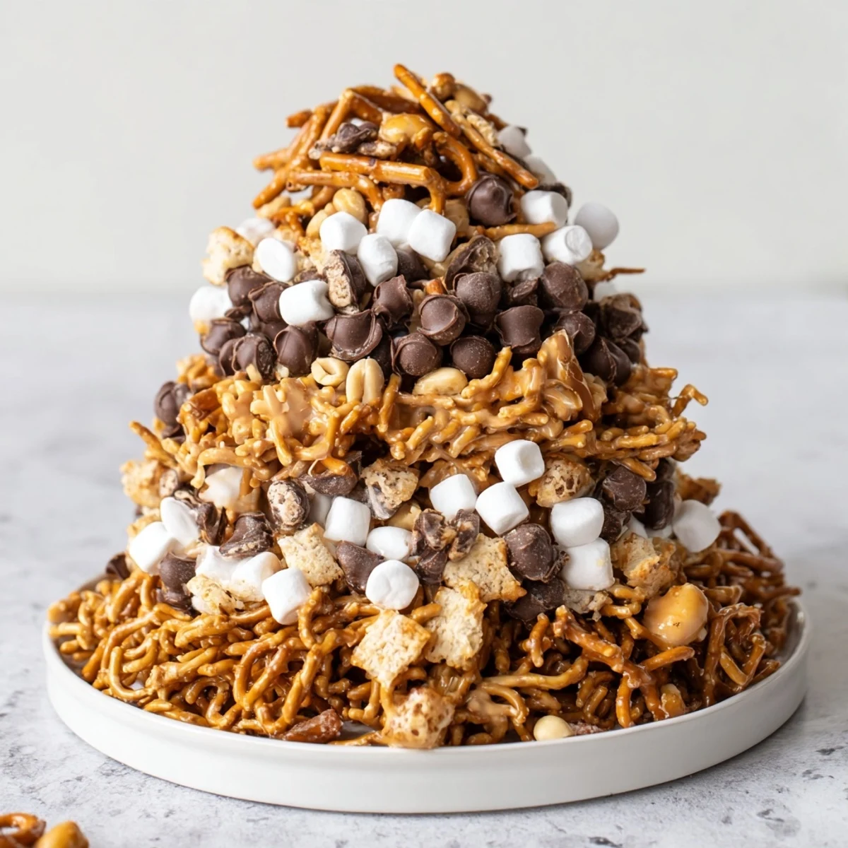 Save to Pinterest Discover the delightful charm of the Haystack Candy Tower, a whimsical and delicious treat that stacks layers of crunchy, sweet ingredients in a playful and shareable dessert. Combining crispy chow mein noodles, salty pretzel sticks, and a variety of smooth and melted chocolates, this tower is perfect for celebrations, casual get-togethers, or anytime you crave a fun and easy-to-make sweet snack.