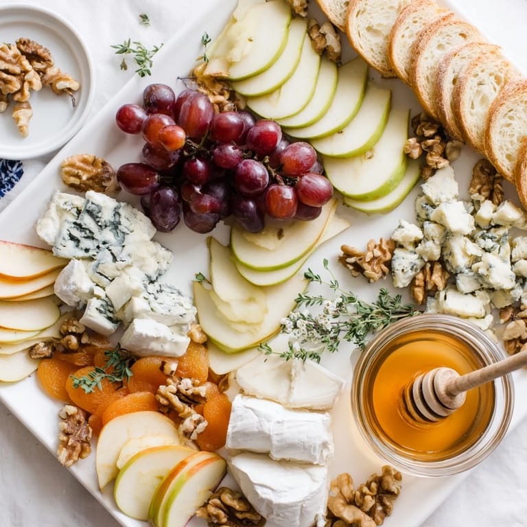 Save to Pinterest An elegant and inviting cheese board featuring a selection of cheeses, fresh honeycomb, floral honey, and delicious accompaniments. Perfect for entertaining or as a sophisticated appetizer.