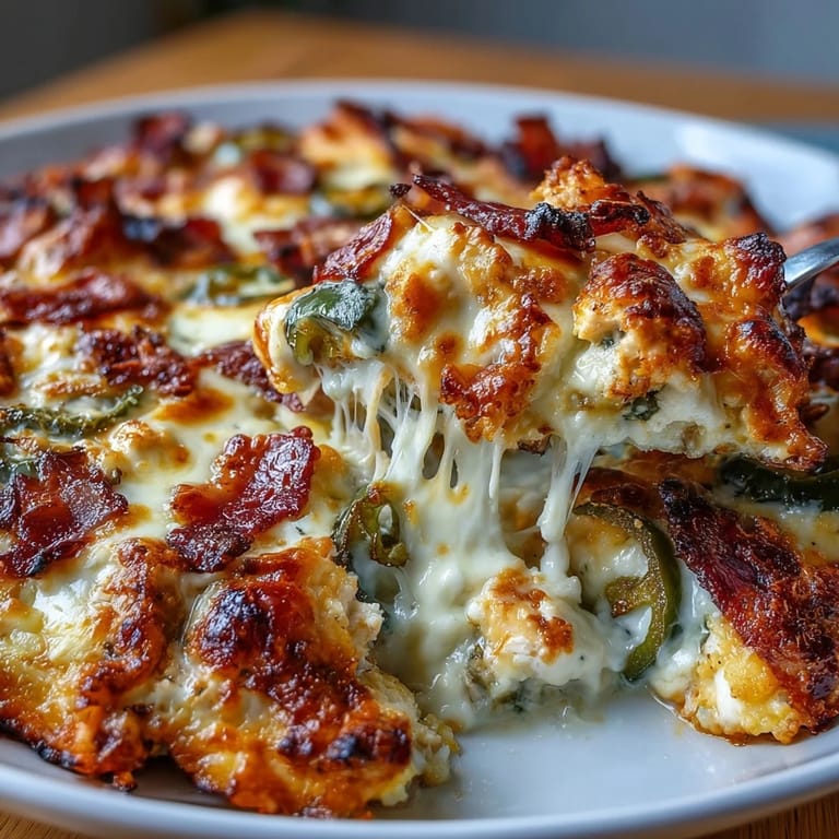 For a smoky variation, add 1/2 teaspoon of cumin or replace the regular paprika with chipotle powder. Make it extra decadent by adding 1/4 cup of crumbled queso fresco on top before serving. If jalapeños are too spicy, substitute with milder poblano peppers or green bell peppers. For those who enjoy extra heat, use pepper jack cheese instead of mozzarella or add a few drops of hot sauce to the cream cheese mixture. A vegetarian version can be made by omitting the chicken and bacon, and adding extra cauliflower rice or some diced zucchini and mushrooms for substance.