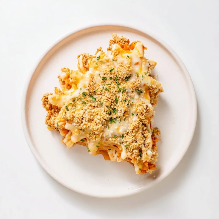 Save to Pinterest A creamy, comforting pasta bake featuring whimsical snowflake-shaped pasta, made lighter with reduced-fat cheese and a crisp breadcrumb topping.