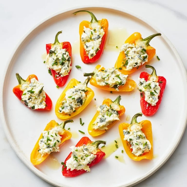 Save to Pinterest Bright, colorful mini bell peppers filled with a creamy, herbed feta mixture—perfect as a fresh, crowd-pleasing appetizer.