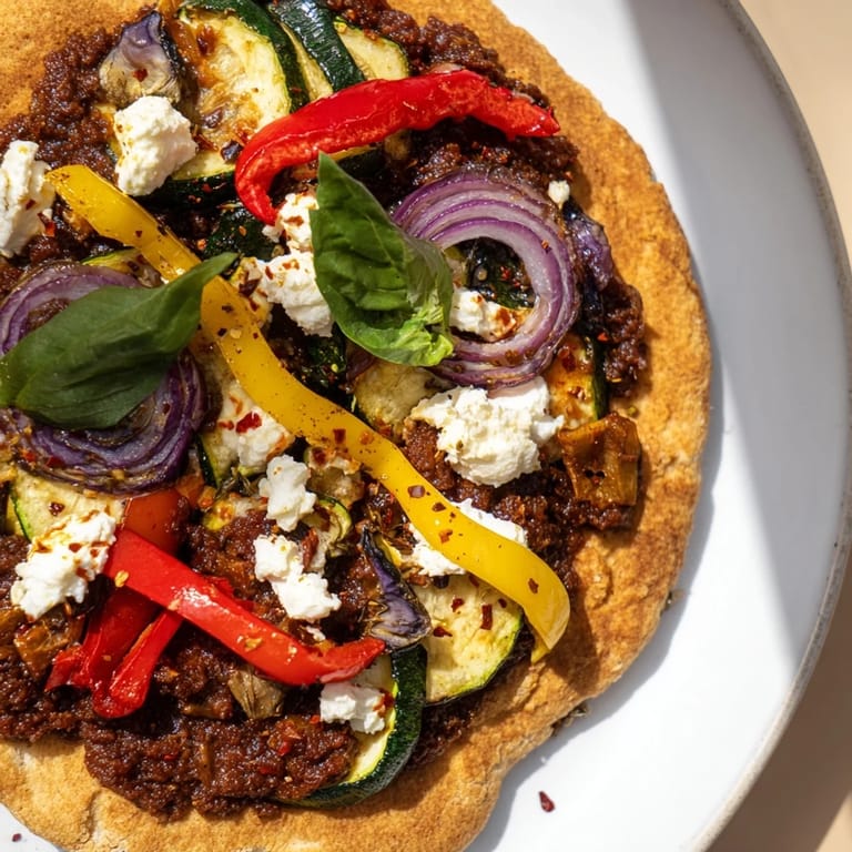 What makes this naan pizza feel more sophisticated than it should is the layering of flavors and textures—the salty tapenade against the sweet roasted vegetables, the creamy coolness of feta against the warm crispy bread, the brightness of basil at the end. Each element is doing something different, and they only work because they're in conversation with each other. If you skip any of them, something gets lost in translation.