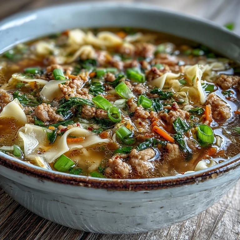 This soup actually tastes better the next day, which makes it perfect for meal prep or making ahead for dinner parties. I like to serve it with something crunchy on the side, like crispy wonton strips or just good crusty bread. The leftovers freeze well too, though the cabbage will soften a bit more upon reheating.