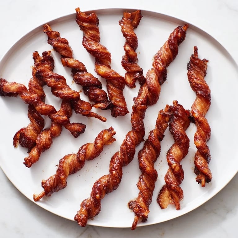 Thick-cut bacon works best as it holds the spiral shape and provides substantial texture. Regular bacon will become very crispy and may break more easily when twisting. If using thin slices, reduce baking time by 3-5 minutes.