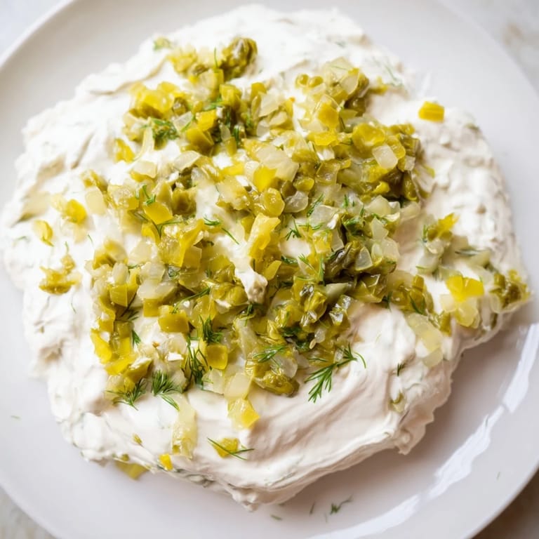 Save to Pinterest A tangy, creamy dip featuring sweet and sour pickle relish, perfect for chips, sandwiches, or as a burger topping.