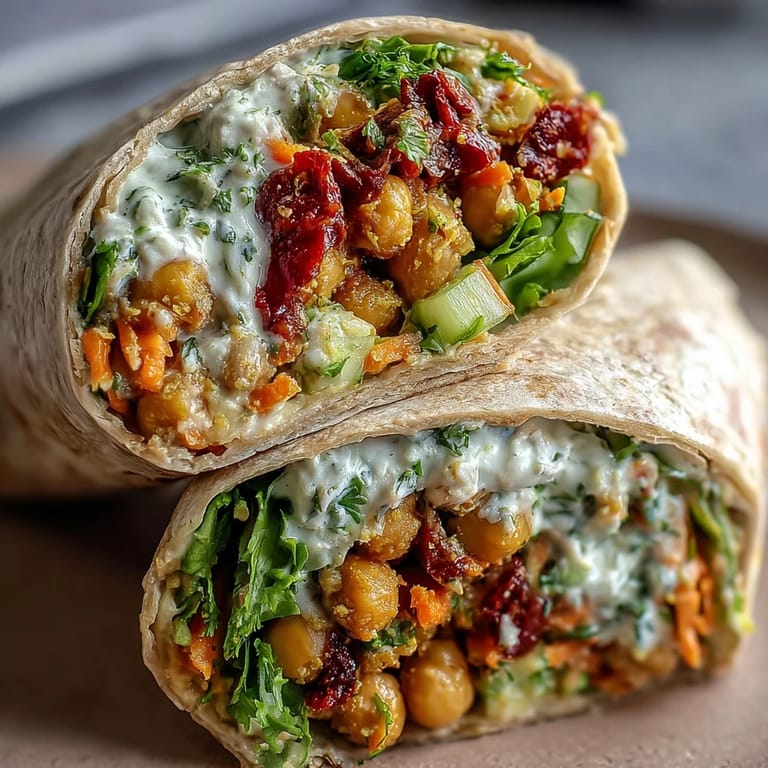 Save to Pinterest I discovered these wraps on a Tuesday afternoon when my fridge was nearly empty except for a can of chickpeas and some wilting cilantro. My partner had mentioned craving something warm and comforting, but the heat outside made me want something lighter instead. I grabbed coconut yogurt almost on impulse, wondering if curry could bridge that gap between cozy and fresh. That first bite—the creaminess mixed with the gentle spice and the snap of raw vegetables—felt like I'd accidentally invented something I'd been searching for without knowing it.