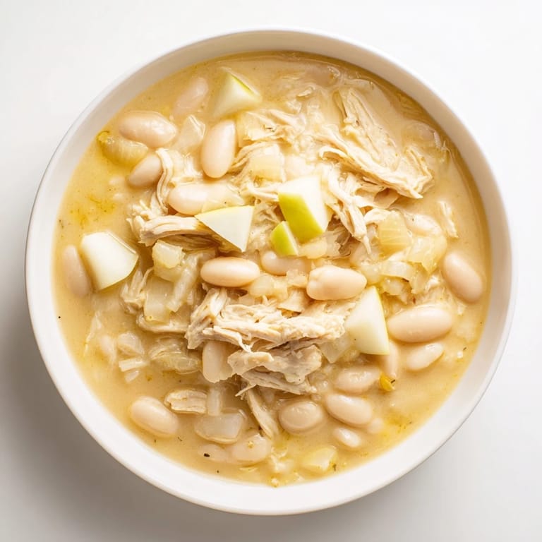 Save to Pinterest A hearty comforting chili featuring tender chicken creamy white cheddar sweet apples and white beans—a unique blend of savory and subtly sweet flavors that will have you coming back for more.