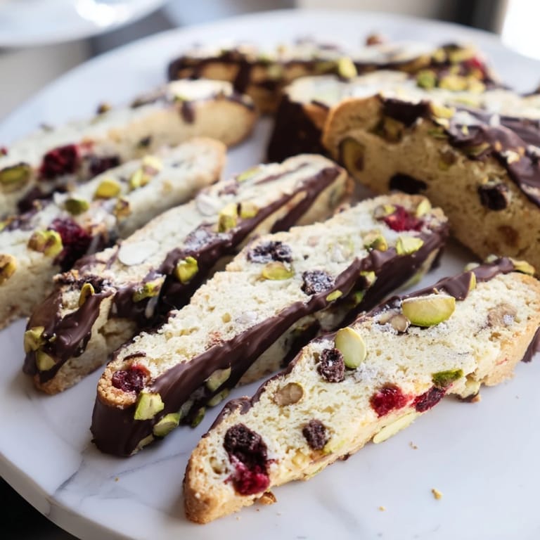 Save to Pinterest Crisp, twice-baked Italian cookies packed with tart dried cranberries, crunchy pistachios, and sweet white chocolate, perfect for dipping in coffee or gifting. No dough chilling required for this easy recipe.